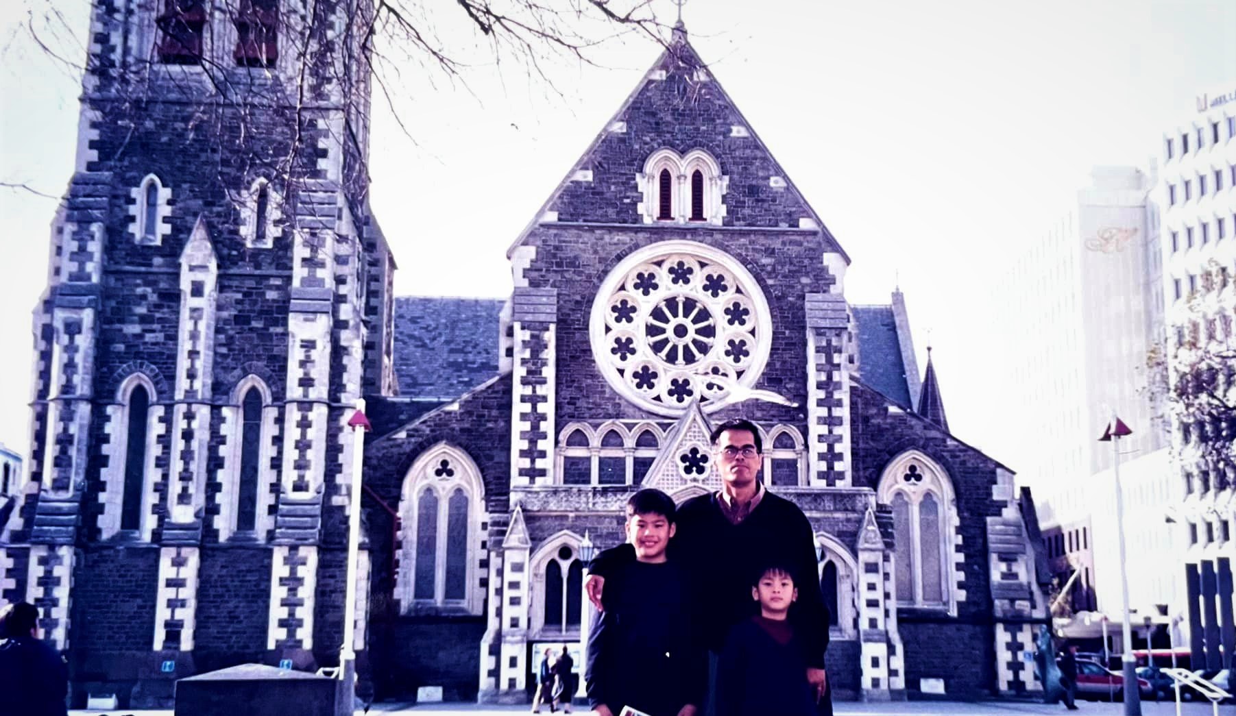 อยู่ในภาพชุดเดียวกัน ประกอบสารคดี Road trip ครั้งหนึ่งในชีวิต “พาลูกไปเที่ยว ไปดูโรงเรียน” ในปี 2545 เป็นมุมหนึ่งของฉากตระการตา ณ จัตุรัสกลางเมือง Christchurch, New Zealand น่าเสียดายอย่างยิ่ง อีก 9 ปีถัดมา (2554) เกิดแผ่นดินไหวครั้งใหญ่ที่นั่น ตึกรามทั้งย่านถูกทำลายเสียหายหนัก รวมทั้ง Christ Church Cathedral แลนด์มาร์กสำคัญ ในที่สุดซากที่เหลือต้องรื้อทิ้ง (2555) เหลือไว้แต่ภาพและความทรงจำของผู้เคยไปเยือน (ภาพ 2) ส่วนร้านกาแฟในภาพนั้นเป็นไปอย่างไรไม่ได้ติดตาม
